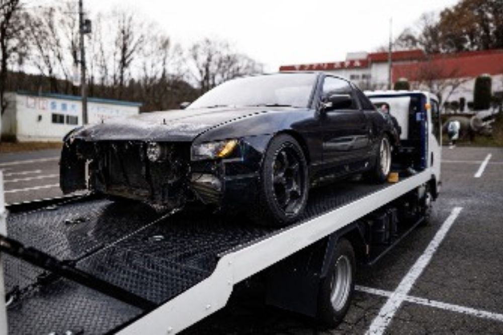 牽引作業中は車両への追加損傷を防ぐため、適切な固定方法と慎重な運転を心がけております。